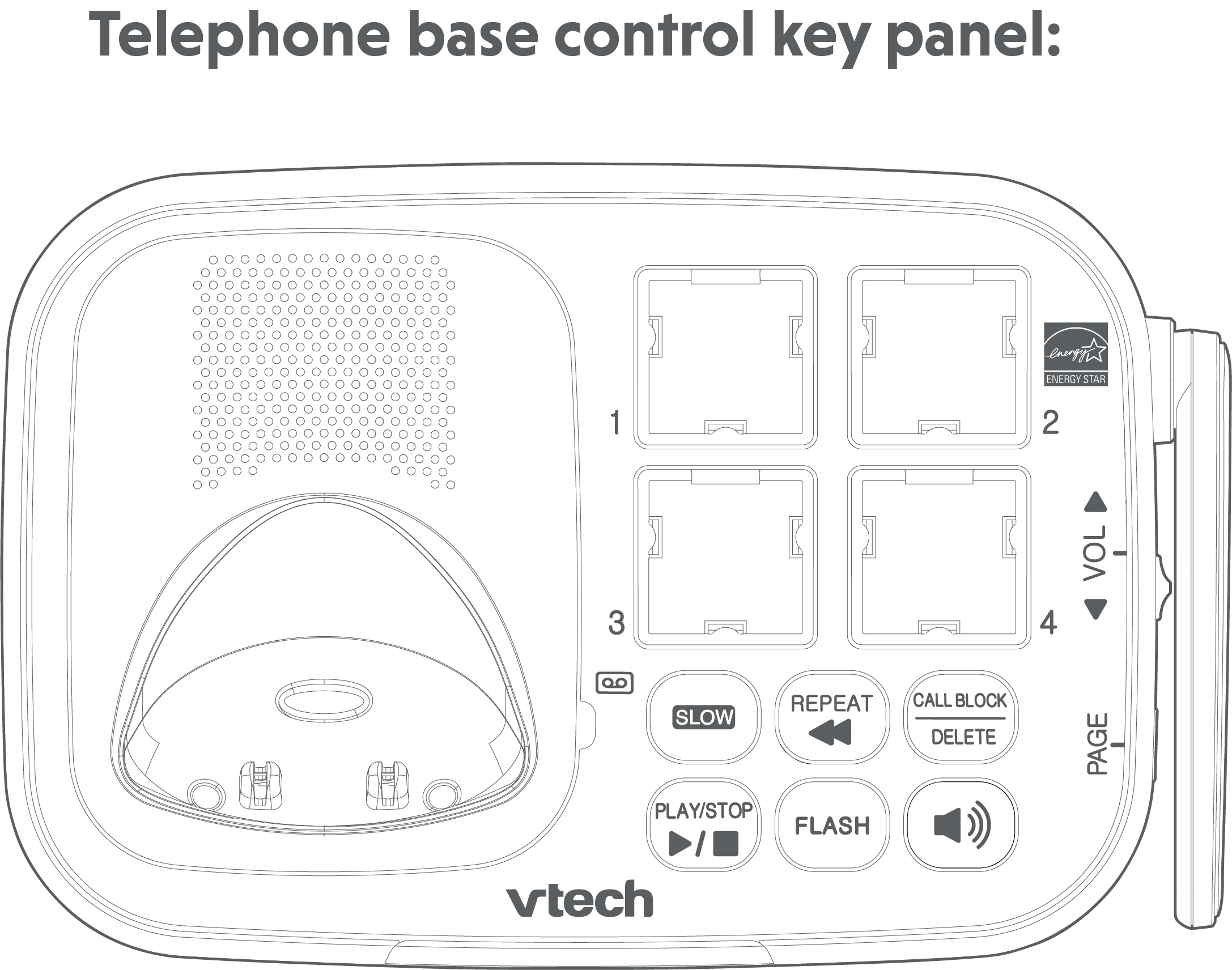 on the telephone base to adjust the speaker volume when on a call or adjust the ringer volume when the telephone is ringing.